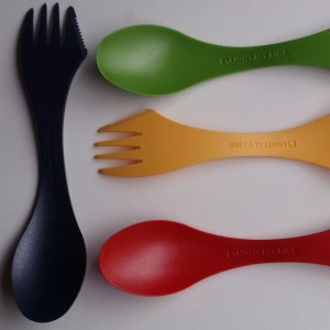 Qu’est-ce que c’est que cette chose ? Pas un animal, ni une serpillère… mais alors quoi ? Eh bien il s’agit d’un tout en un couteau-fourchette-cuillère. Les anglais ont déjà un mot pour ça : spork (spoon : cuillère, et fork : fourchette, mais ils ont oublié le couteau, ndlr). Nous avons maintenant le nôtre ! Et si vous vous demandez toujours quelle peut bien être la différence entre ça et un couteau suisse, voilà la démo :